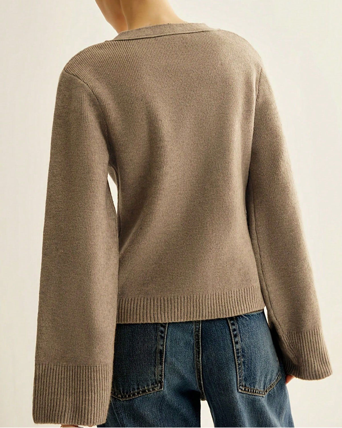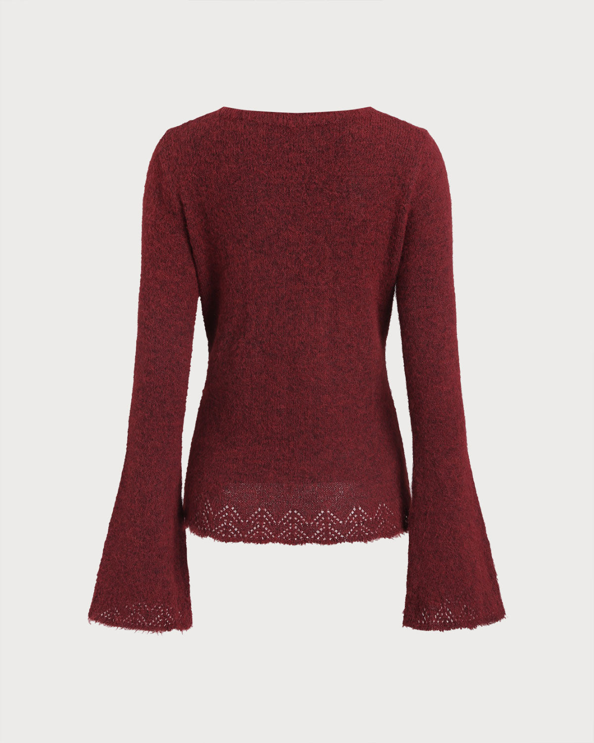 Şarap Kırmızısı V Yaka Çan Kollu Kazak