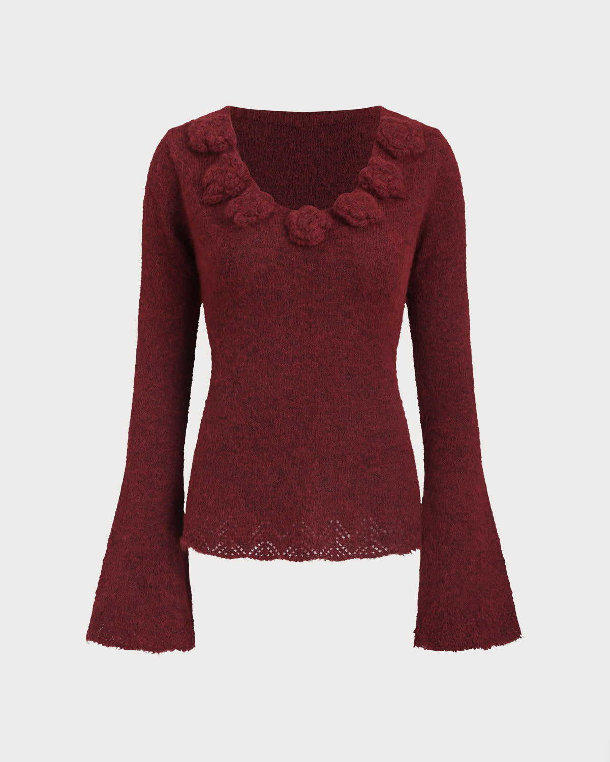 Kırmızı Omuzdan Bağlamalı Çan Kollu Kazak