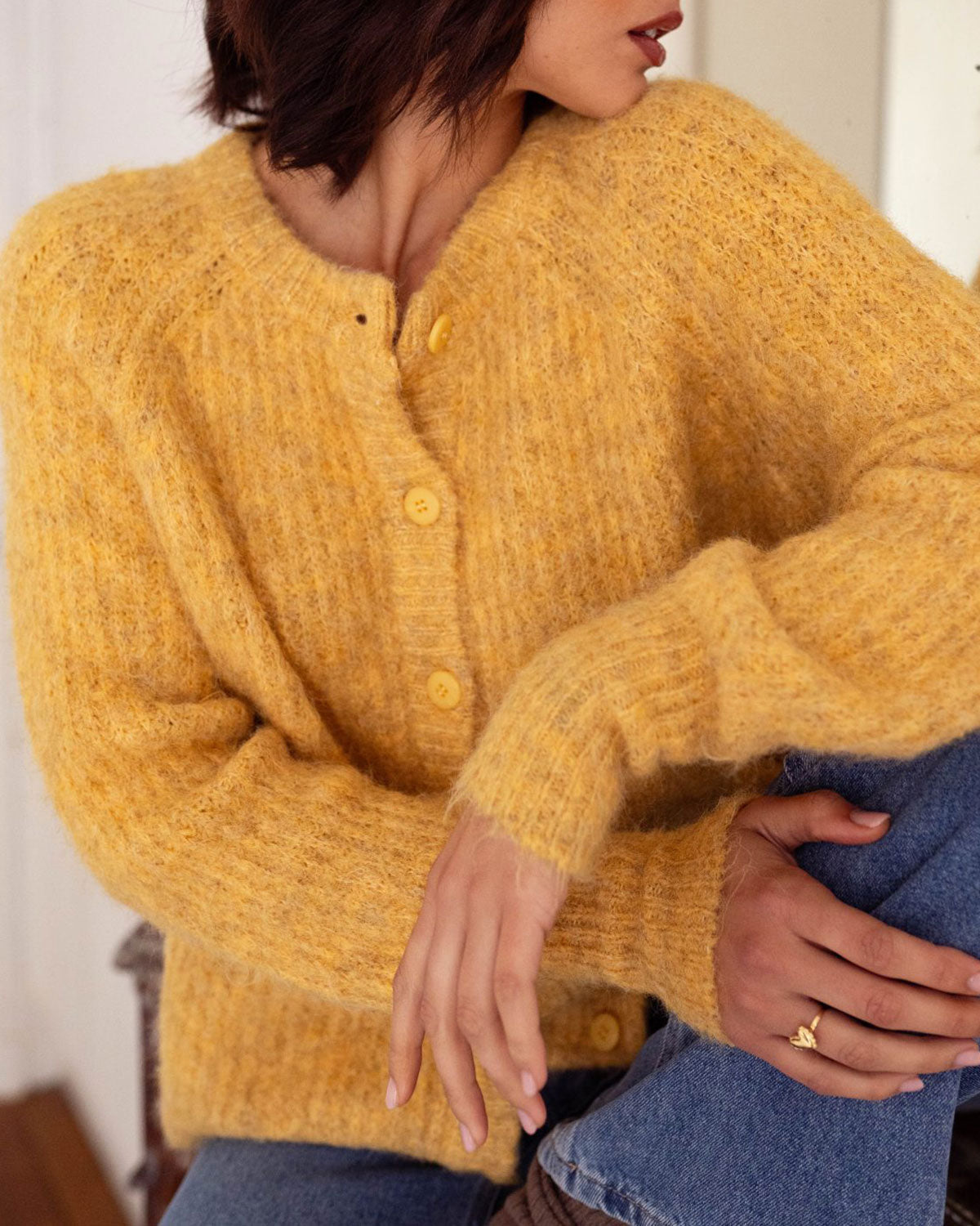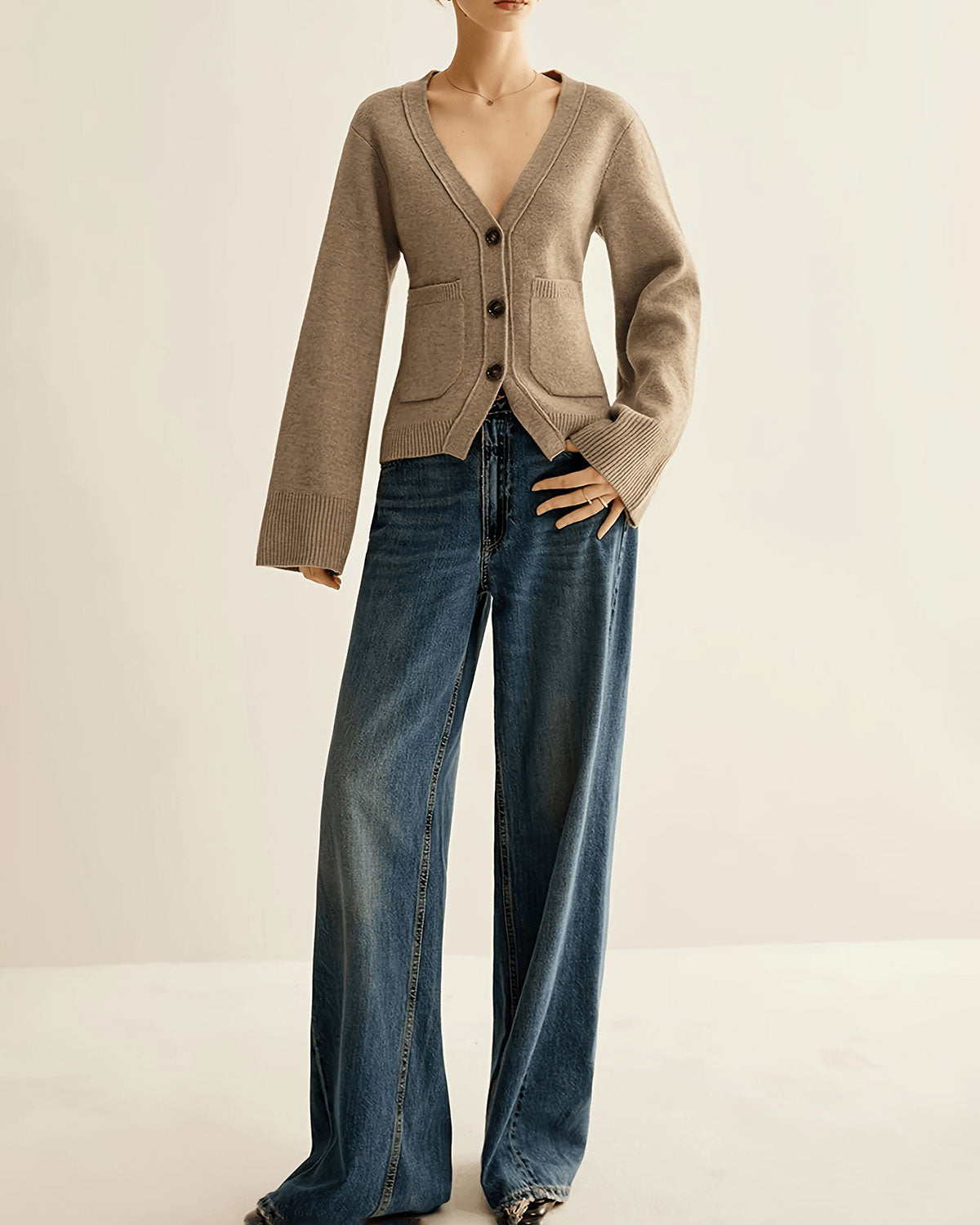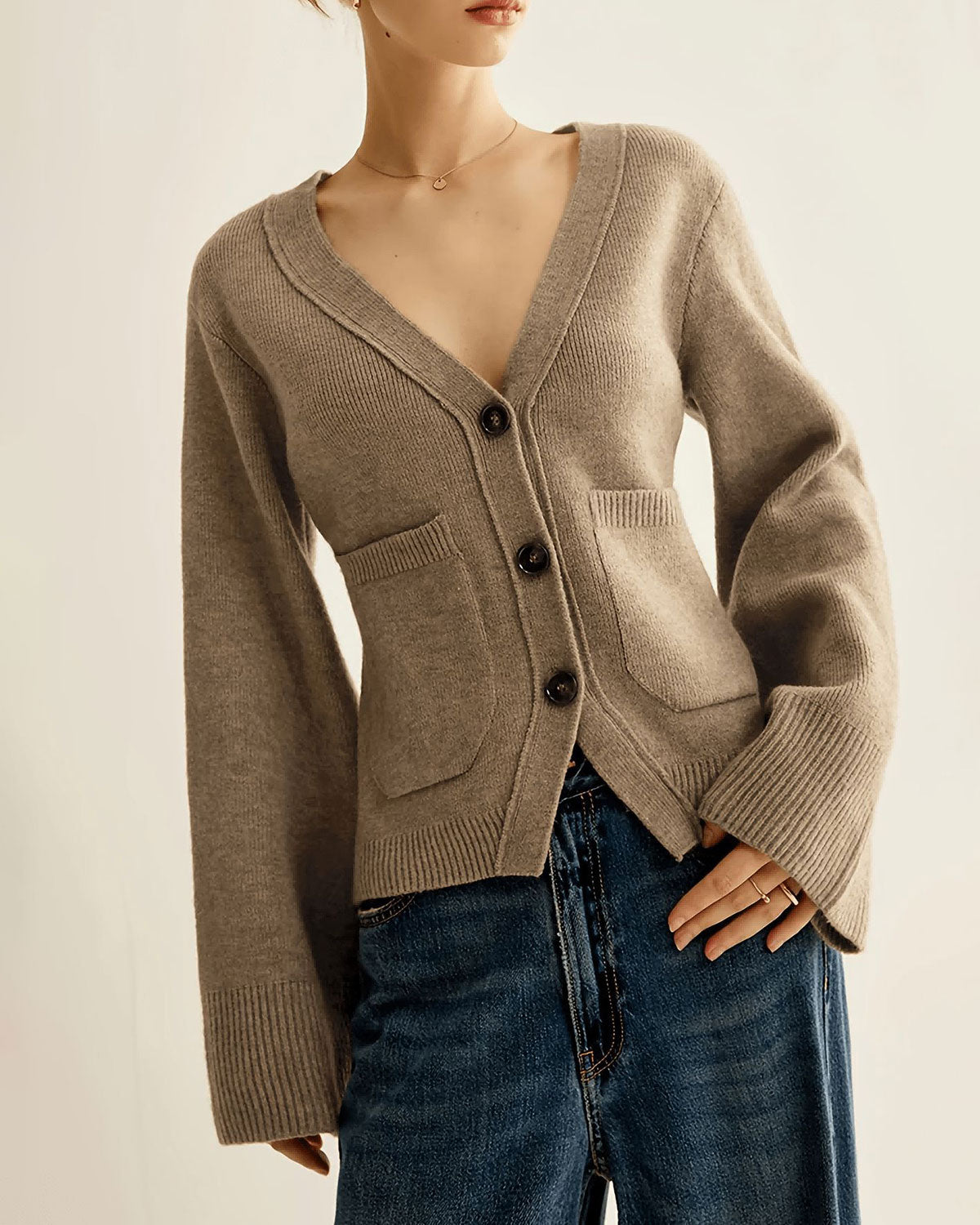 Deve Tüyü Tek Sıralı Örgü Hırka