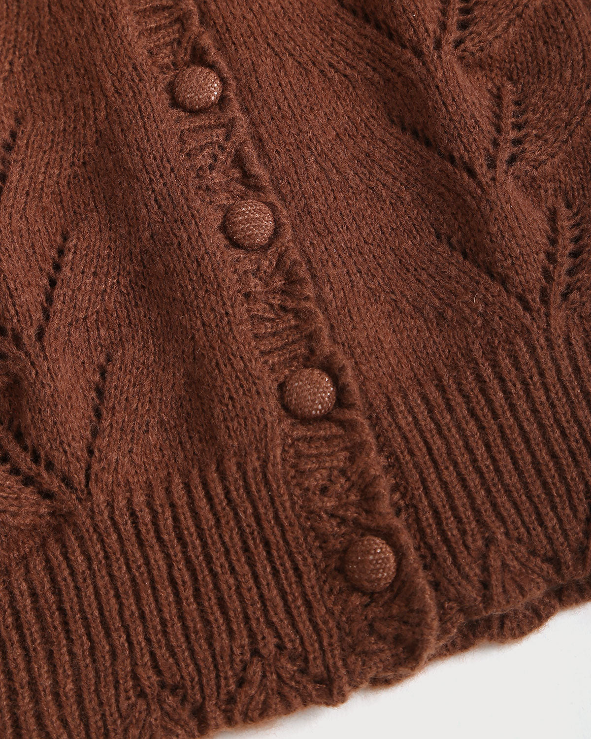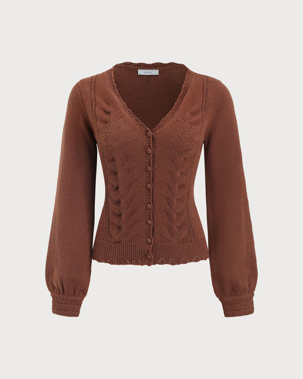 Kahve Tek Düğmeli Bol Örgü Hırka