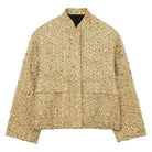 Özel günler için veya cesur bir açıklama yapmak istediğinizde mükemmel olan bu lüks payet süslemeli tüvit ceketle altın gibi parlayın. Özel dikim kalıbı ve şık, modern tasarımıyla bu ceket, sofistike görünümü göz alıcı bir dokunuşla birleştiriyor. Unutulmaz bir görünüm için zarif bir pantolon veya şık bir etekle eşleştirin!