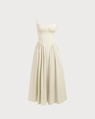 Bej Kare Yaka Cepli Slip Midi Elbise
