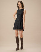 Belltoile Siyah Dantel Kayık Yaka Kolsuz Mini Elbise