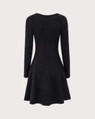 Belltoile™ Siyah Kare Yaka Ribanalı Triko Elbise