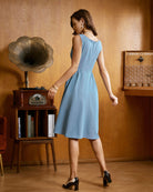 Belltoile Mavi Kayık Yaka Düğmeli Kolsuz Midi Elbise