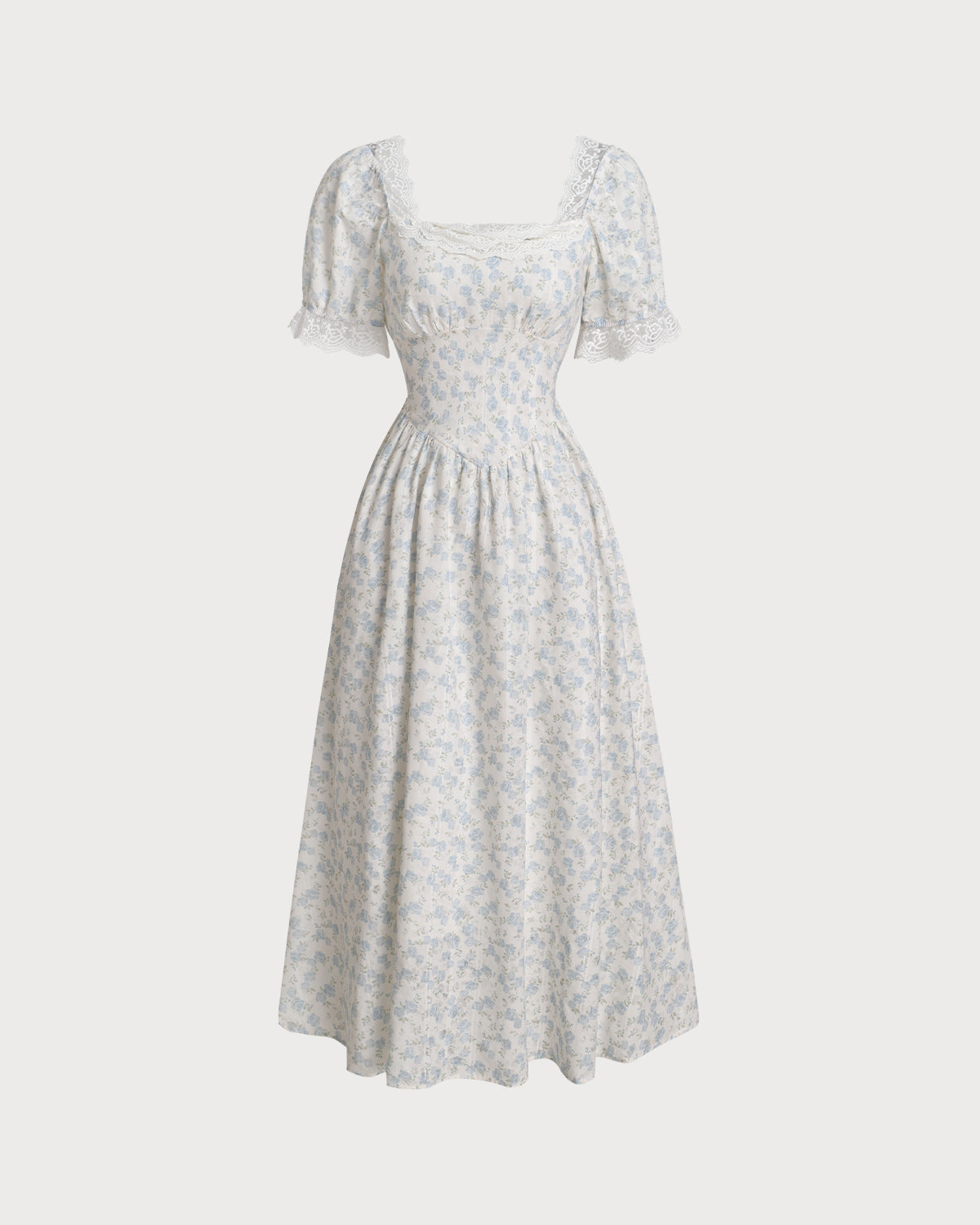 Belltoile™ Mavi Çiçekli Kabarık Kol Midi Elbise
