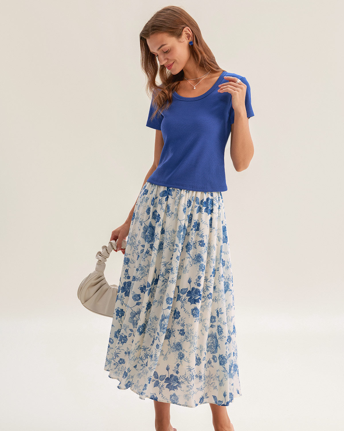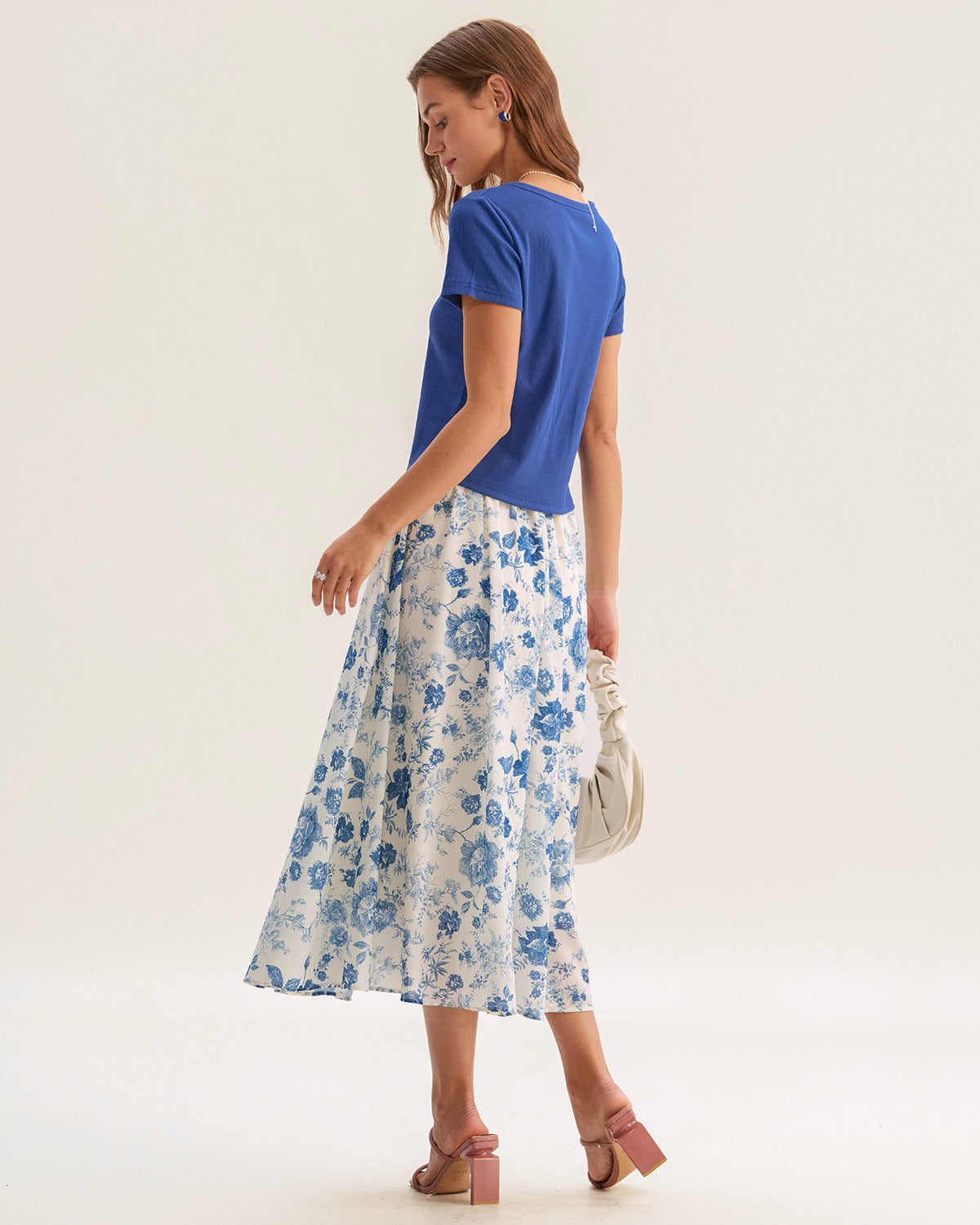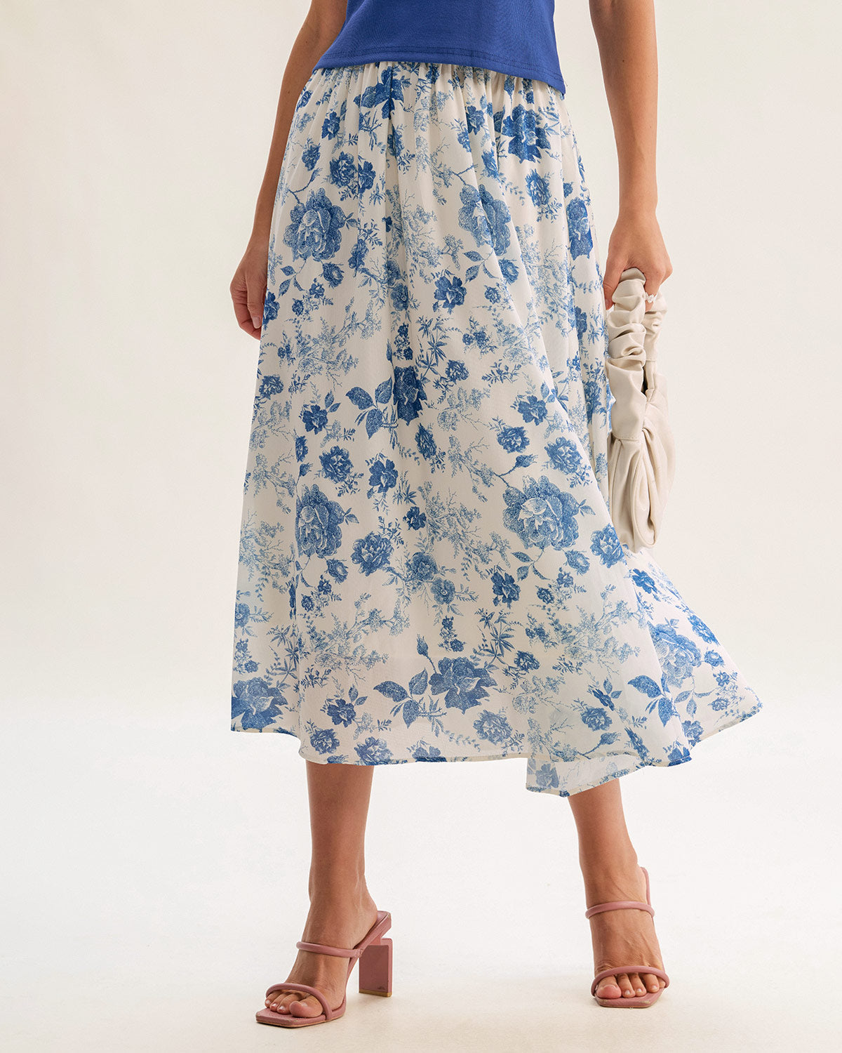 Belltoile™ Mavi Çiçekli Etek İkili Takım