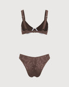 Belltoile™ Kahverengi File Balenli Bikini Takımı