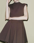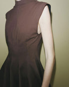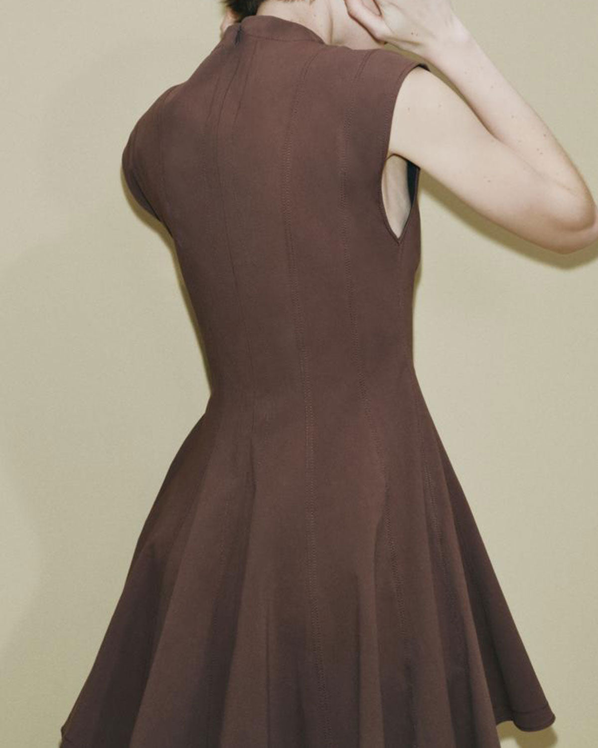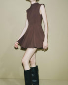 Kahverengi Kolsuz A Kesim Mini Elbise