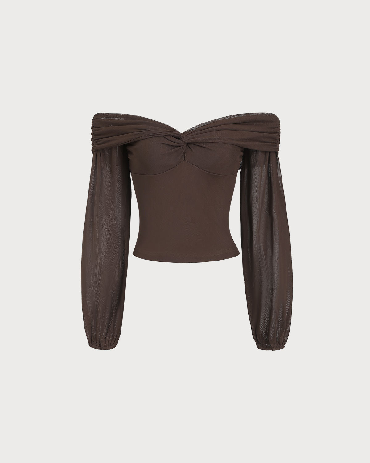 Kahve Omuzdan Bağlamalı Büküm Tişört