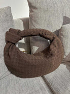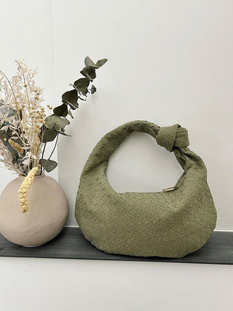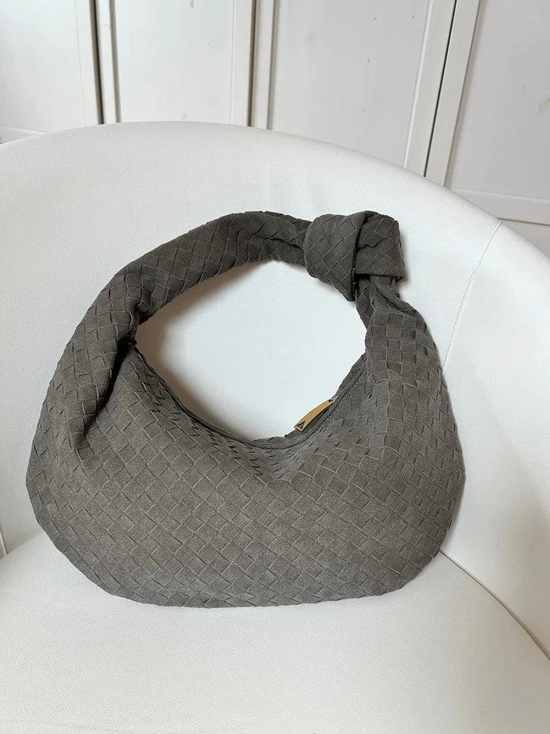 Süet yapısı sayesinde moda ve kullanışlılığı zahmetsizce bir araya getiren Orta Boy Süet Dokuma Çantamızı sunuyoruz. Bu çanta, düğüm detayı ve dokuma görünümü sayesinde akşam yemeği veya günlük kullanım için idealdir. Şık, sonbahar stili, ister dışarıda yemek yerken ister günlük işlerinizi yaparken kıyafetinizle uyumludur. Bu önemli ürünü koleksiyonunuza ekleyerek öne çıkmasını sağlayın.