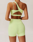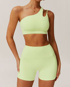 Belltoile™ Yeşil Tek Omuzlu Kısa Yoga Üstü - Hafif Destekli