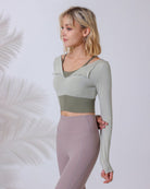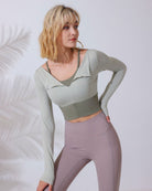 Belltoile™ Adaçayı Yeşili Yuvarlak Yaka Uzun Kollu Üst - Hafif Destek