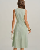 Yeşil Yuvarlak Yaka Kolsuz Midi Elbise