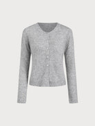Gri Yuvarlak Yakalı Yivli Örgü Hırka