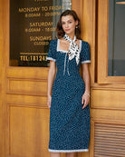 Belltoile™ Lacivert Puantiyeli Dantel Midi Elbise