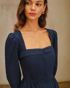 Lacivert Kare Yaka A Kesim Midi Elbise