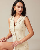 Belltoile™ Kirli Beyaz V Yaka Puantiyeli Sırtı Bağlamalı Midi Elbise