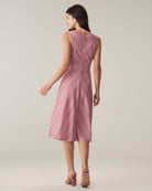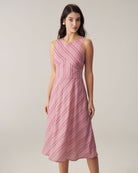 Belltoile™ Pembe Çizgili V Yaka Kolsuz Midi Elbise