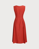 Belltoile Kırmızı V Yaka Düğmeli Kolsuz Midi Elbise