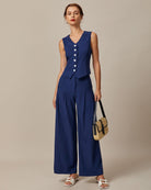 Belltoile™ Lacivert V Yaka Düğmeli Kolsuz Yelek