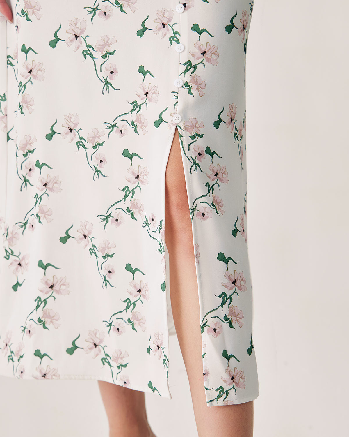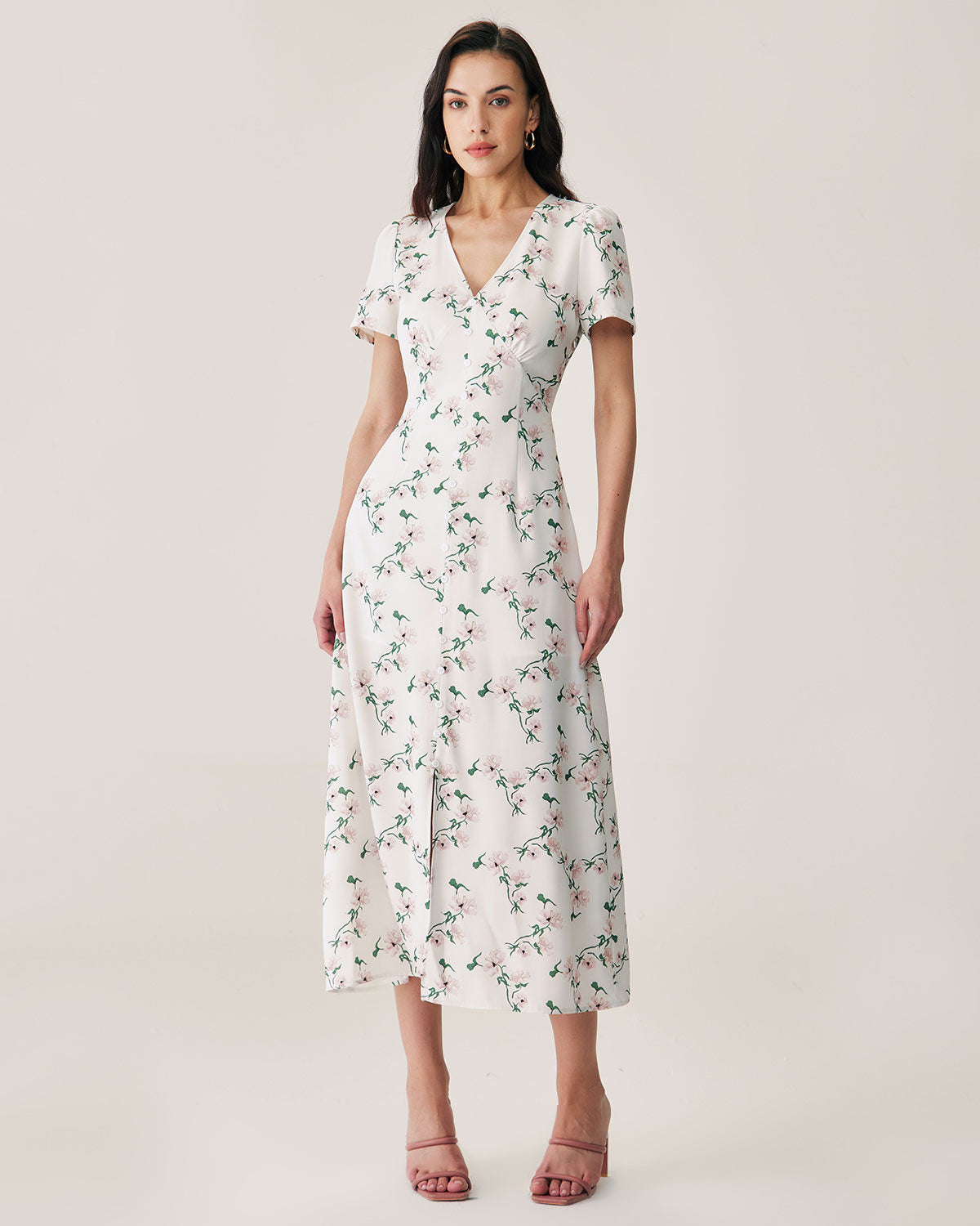 Belltoile Beyaz Çiçekli V Yaka Uzun Elbise