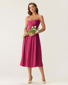Gösterişli kare yakası, pratik cepleri ve havadar midi boyuyla bu elbise, şıklığı ve rahatlığı bir araya getiriyor; güneşli günler, günlük geziler veya zahmetsizce üst üste giymek için mükemmel. Günlük gardırobunuzun olmazsa olmazı.