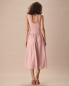 Belltoile™ Kadın Pembe Kayık Yaka Kolsuz Lyocell Midi Elbise