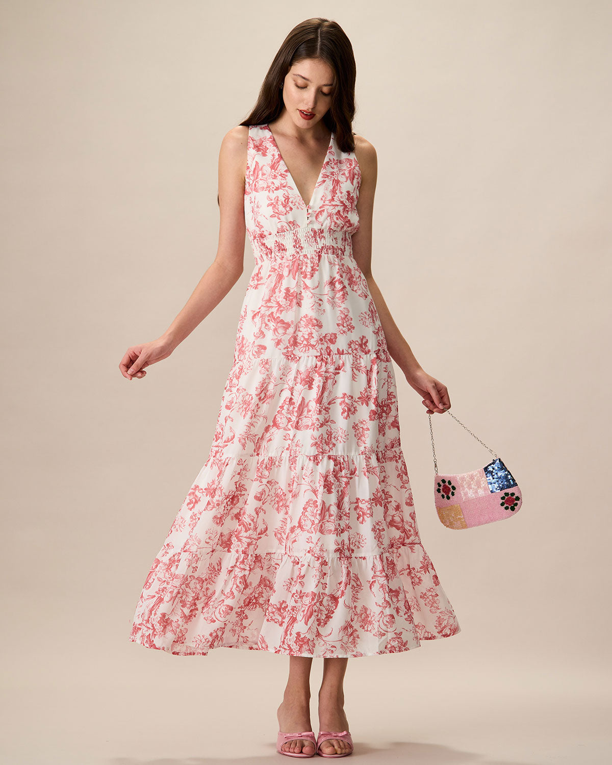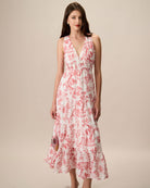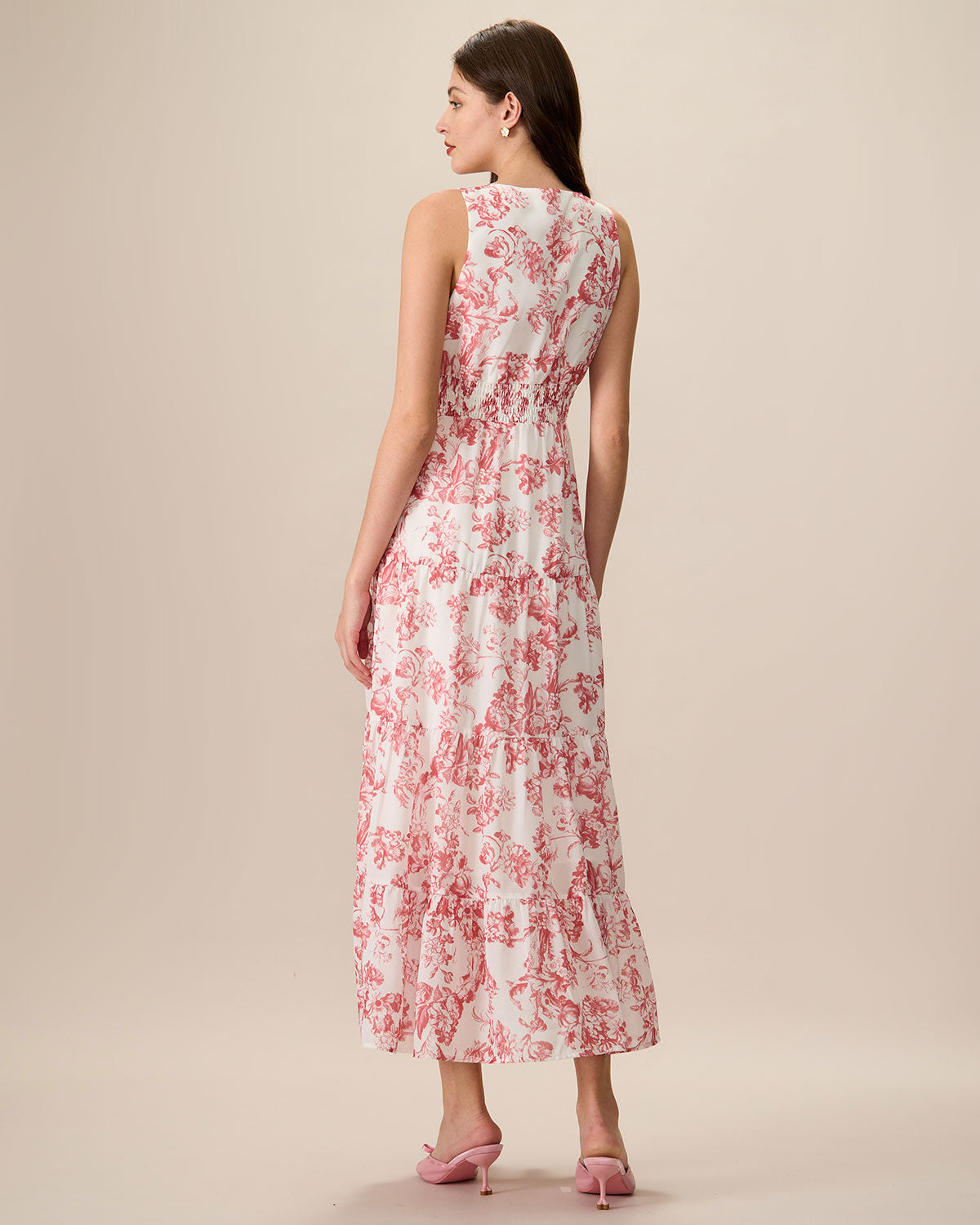 Belltoile™ Kadın Kırmızı Çiçekli Dantelli Kolsuz Maxi Elbise