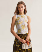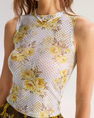 Belltoile™ Sarı Çiçekli Yuvarlak Yaka Kolsuz Bluz