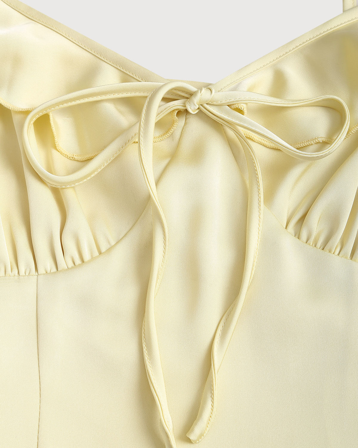 Sarı V Yaka Volanlı Denizkızı Midi Elbise